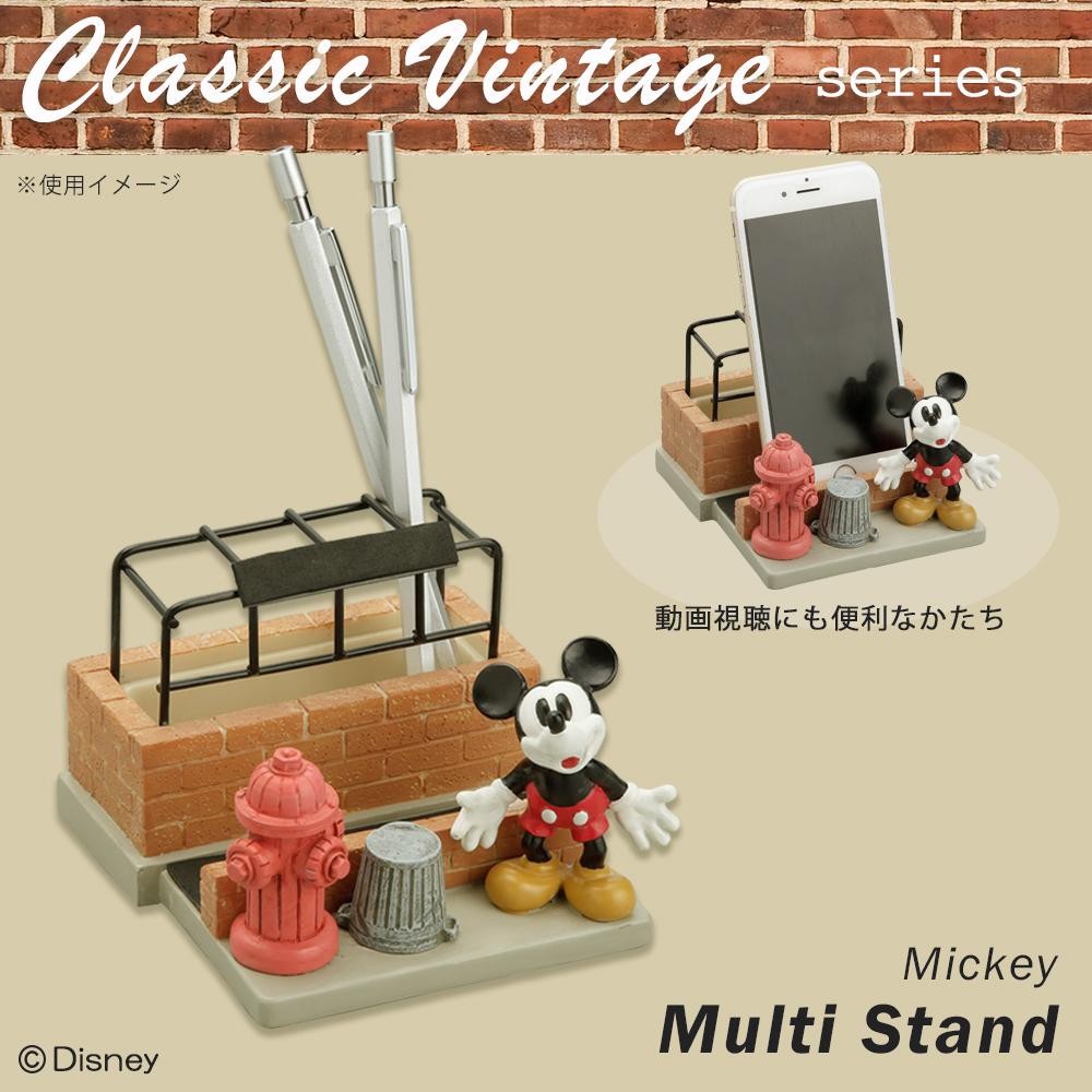 ペンとメモ、スマホ等が置けるミッキーのマルチスタンドです。 製造国:中国 素材・材質:レジン、スチール 商品サイズ:W11.5×L11.5×H8cm 重量:約400g ※サプライヤー直送品【商品名】セトクラフト Classic Vintage series マルチスタンド(ミッキー) SD-5571-300