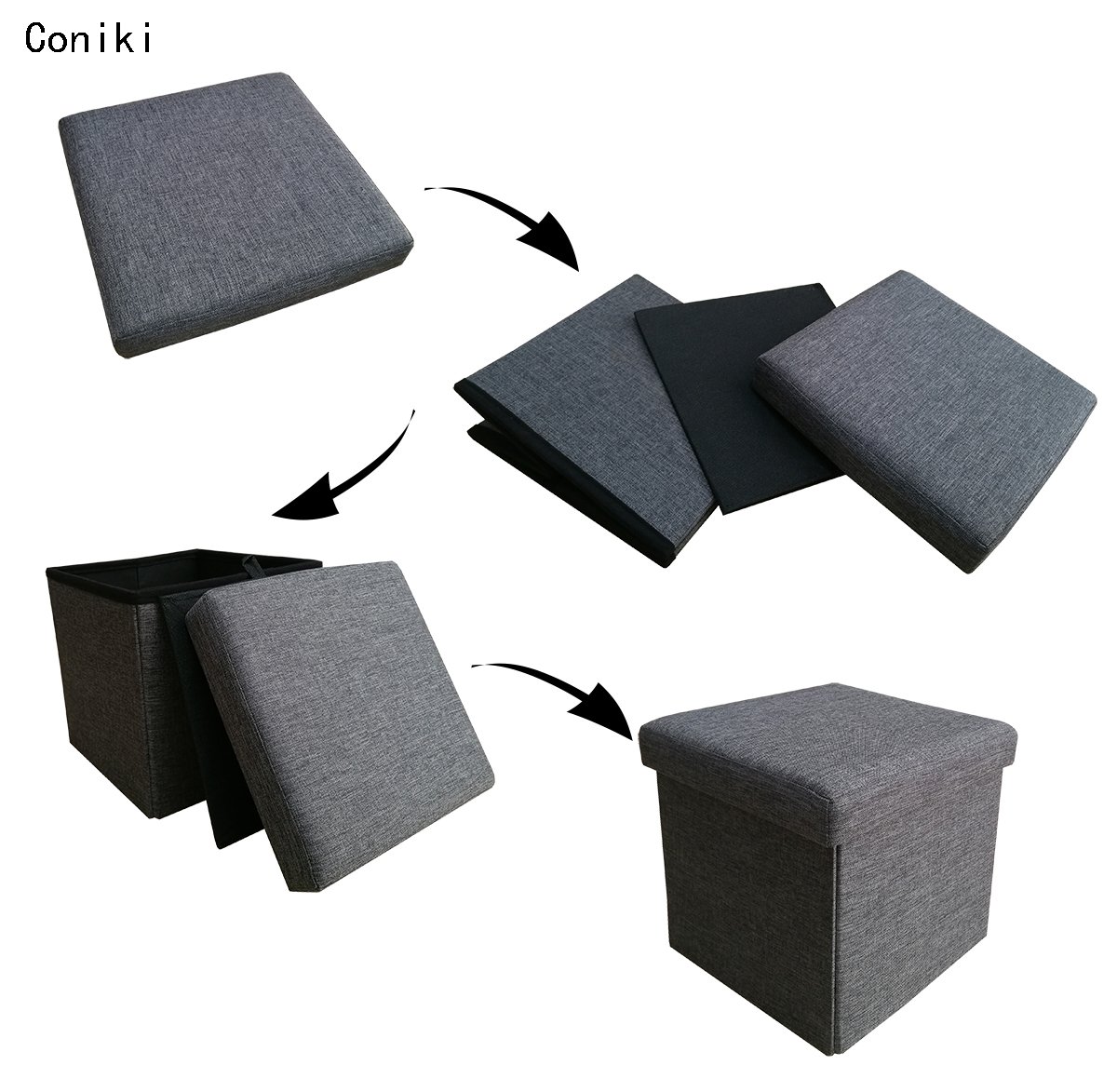 Not only storage, chair, ottoman, storage, multi function stool to perform three roles in one unit.