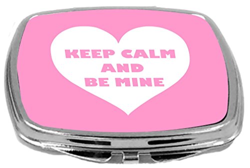 Rikki Knight Valentine's Day Keep Calm and Be Mine Design Compact Mirror, White/Pink, 2 Ounce