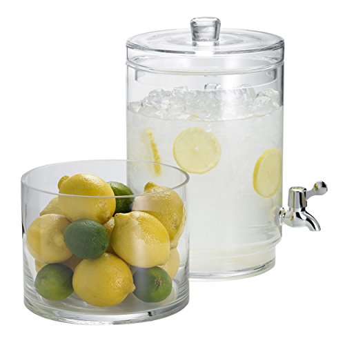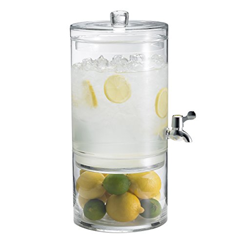 Product Description Makes filling up fuss-free. Serving sangria, punch, or any refreshment just got a lot easier, and neater. Sliding your glass under the spigot to fill up means no more heavy pitchers to lift or spatter to clean. Raised jar with lid holds 2-gallon. Mouth-blown, lead-free crystal.