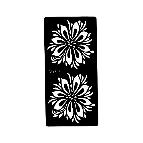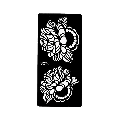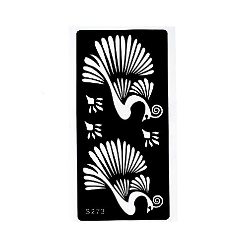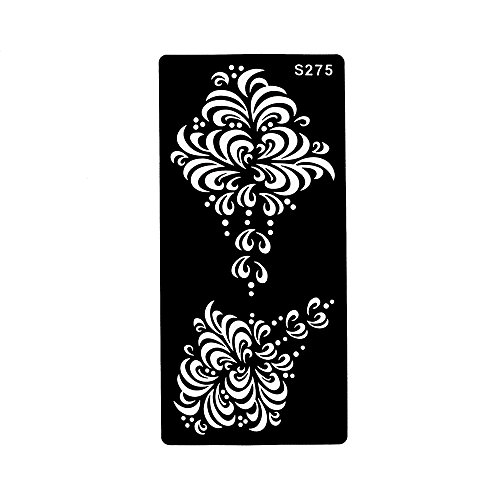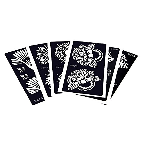 -. Feature : 6 Pieces hollow temporary tattoo stencil in package,including one of each S260, S269, S270, S271, S273 and S275 as picture. / Latest and fashionable designs!!! / The tattoo stencil is self-adhesive and easy to apply. / The tattoo stencil suitable for Henna Paste, Glitter and Airbrush Painting. / You can stick the stencil on shoulder,waist,sleeve,back,leg,arm,chest,hand,feet,neck and so on.