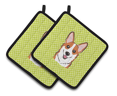 Caroline's Treasures Checkerboard Lime green Corgi Pair of Pot Holders BB1316PTHD, 7.5HX7.5W, Multicolor