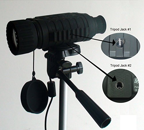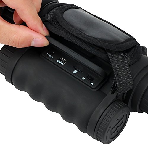 - Feature : Digital Night Vision monocular with 6x magnification, 1-5x digital zoom and a 50mm objective lens; / Photo: 2592*1944 pixel,1600*1200pixel,640*480pixel; Video:1280*720pixel @30 fps 640*480pixel @30 fps; Date and time could be stampted on photo or video / Built in Infrared Illuminator for up to a 1150 ft/350m viewing distance; Day or night use(with IR off for daytime color); With Portable strap(removable), easy for hold; / Device be a live Infrared surveillance camera connecting TV with TV cable; Device be a live Infrared surveillance camera connecting Computer with USB cable / Built in 7 languages menu, easy for operation; Rugged water-resistant housing; tripod mountable(2 tripod Jack); operates on 4 AA batteries (included)