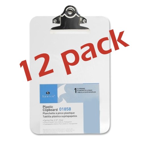 12 pack Transparent Plastic Clipboard, 6 x 9 Inches, Clear (SPR01858)