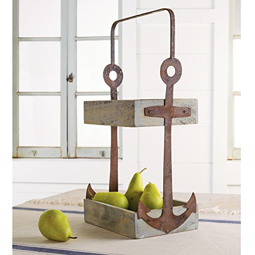 Product DescriptionMango wood fruit stand from Mud Pie features two trays for display and Distressed cast iron finish Anchor accent handle.0