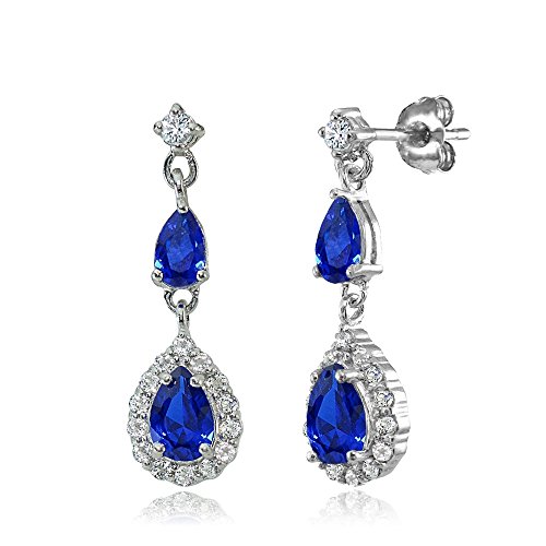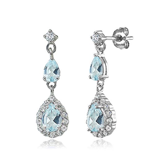 Sterling Silver Genuine, Created or Simulated Gemstone and White Topaz Fashion Teardrop Dangle Earrings