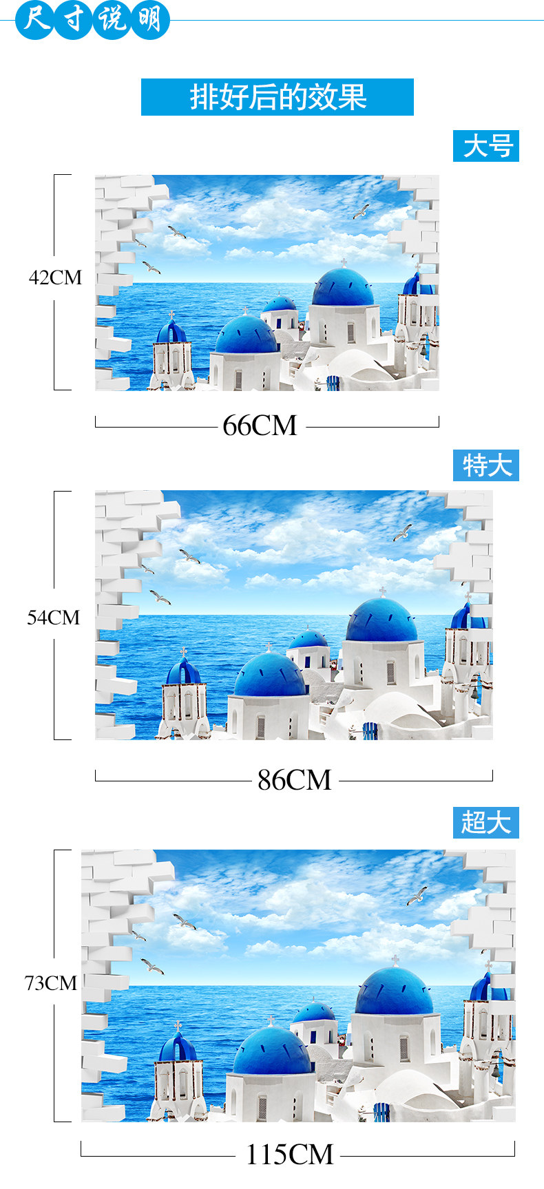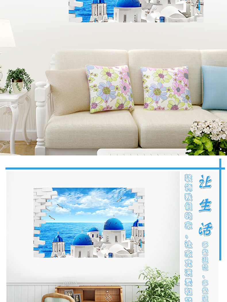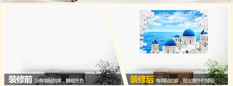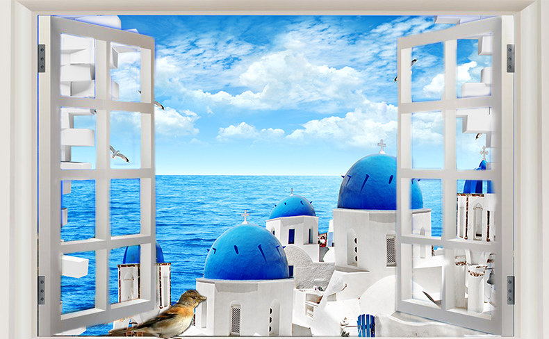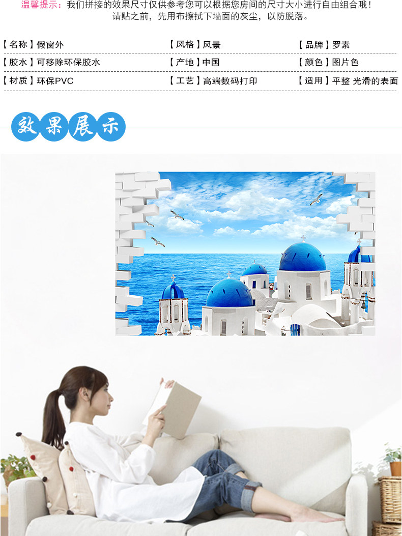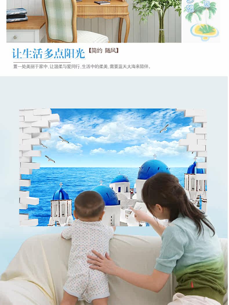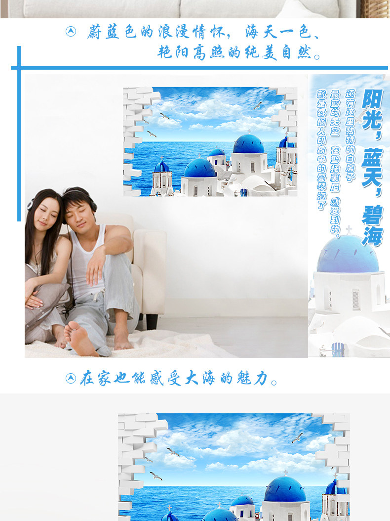 爱情海假窗风景客厅背景墙贴纸可移除卧室床头温馨自粘墙纸贴画