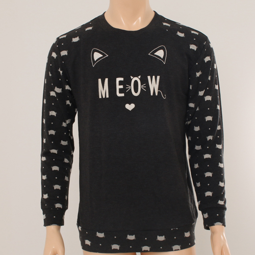 모던한 고양이 캐릭터와 솔리드와 매치한 깔끔하고 귀여운 스타일의 커플 이지웨어입니다. 가슴부분에는 고양이 자수를 원포인트로 하여 더욱 발랄하고 멋스러운 느낌을 살렸습니다. 베이지칼라는 화사하고 귀여운 매력을,다크 그레이 칼라 는 차분하고 세련된 느낌을 줍니다. 남성은 다크 그레이 칼라로 제안합니다