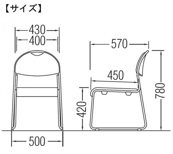| サイズ | 外寸:幅500×奥行570×高さ780mm、座面高さ:420mm 個装サイズ:61×53×83cm |