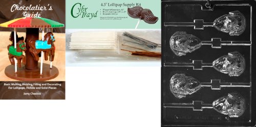 Cybrtrayd Labrador Retriever Lolly Chocolate Candy Mold with Chocolatier's Bundle, Includes 50 Sticks, 50 Cello Bags, 25 Gold and 25 Silver Twist Ties