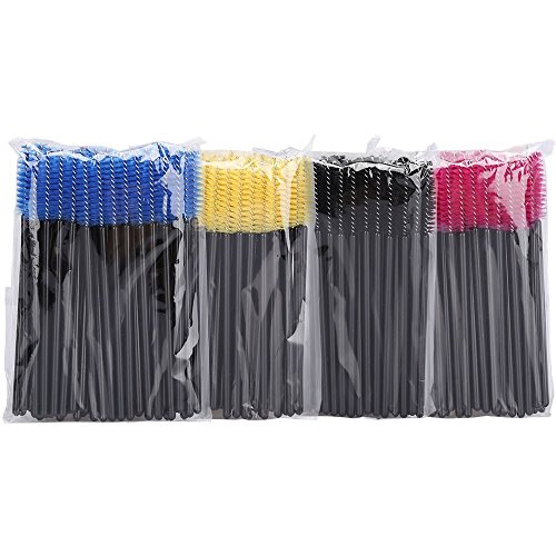 La Tartelette 200 Pieces Disposable Mascara Wands Eyelash Brushes Eye Lash Makeup Applicators Cosmetic Brush Kit (Rose Red, Yellow, Blue & Black)