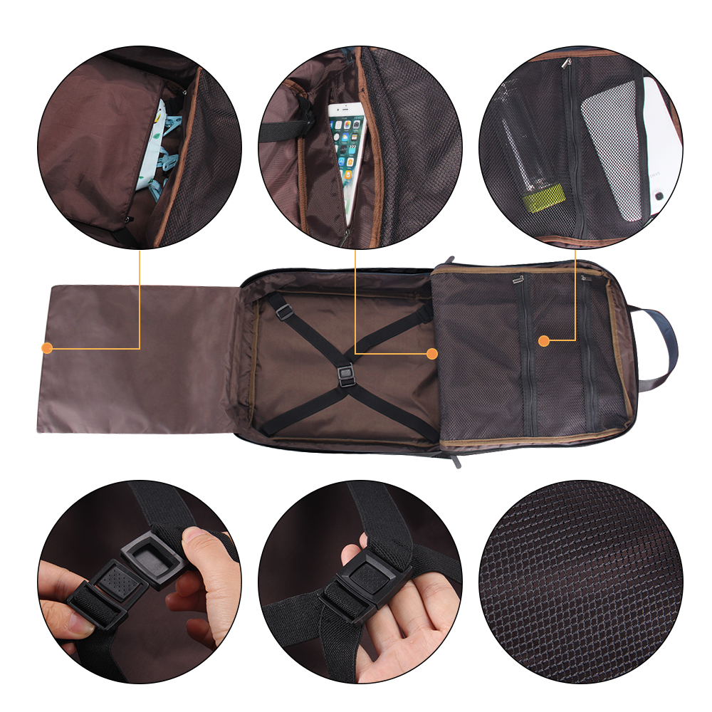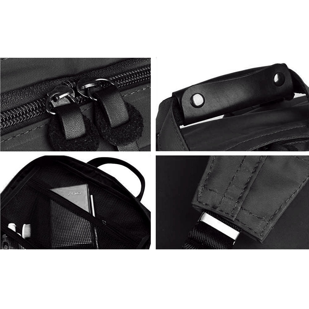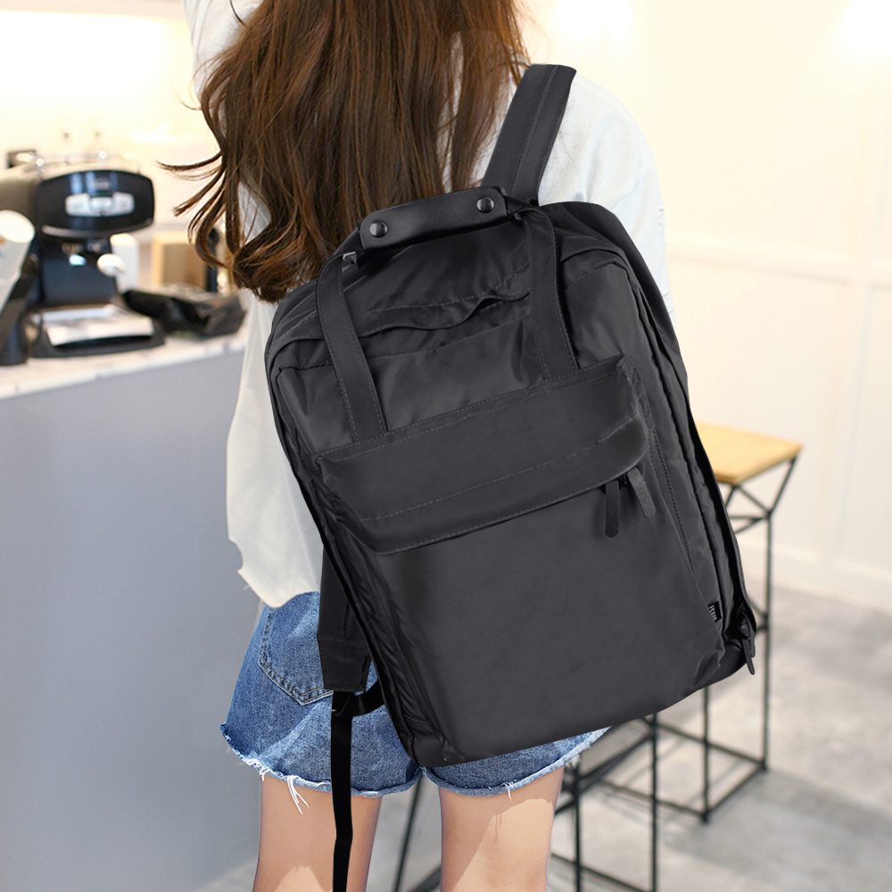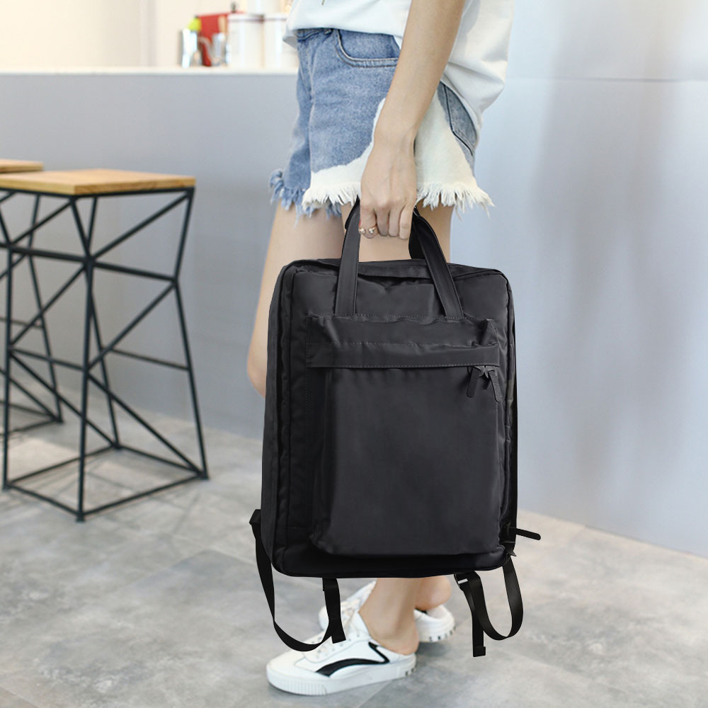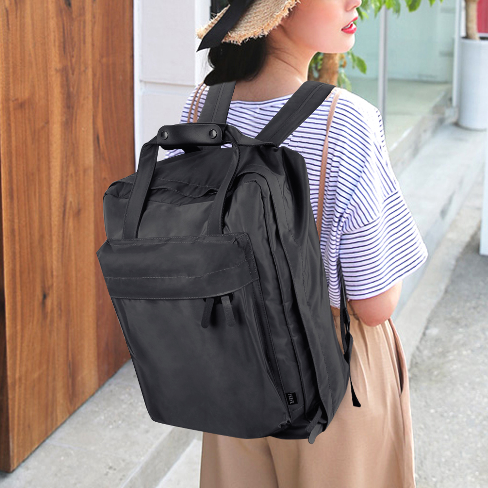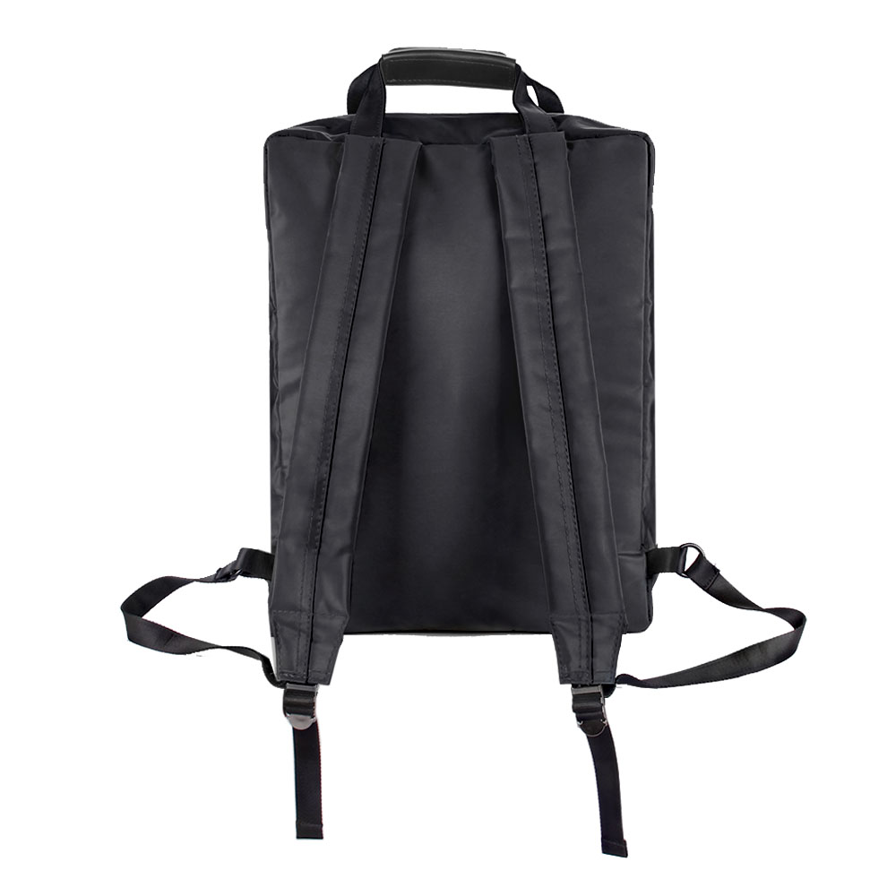 • It is a slightly larger backpack using a firm synthetic leather.