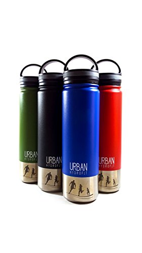 ●● HIGH QUALITY INSULATED HYDRATION BOTTLE: The URBAN HYDROFIT 22 OUNCE INSULATED Water Bottle is the best choice when you want to keep hot drinks hot and cold drinks cold for long periods of time; measuring 10 inches tall with its carry handle lid and 3 inches in diameter, the leakproof bottle comes with an extra sports lid and a matching drawstring sack; it is available in BLACK, BLUE, RED, or GREEN and arrives in a designer gift box; the company logo and name are on the bottle and bag;