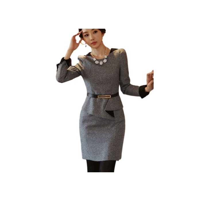 원본상품명: 【 セットスツ風 タイトスカト 長袖 ワンピス ベルト付 グレ ( M L 2サイズより) 】 レディス パティ イベント 結婚式 二次 合 仕事 キャリア OLスツ お出掛け お呼