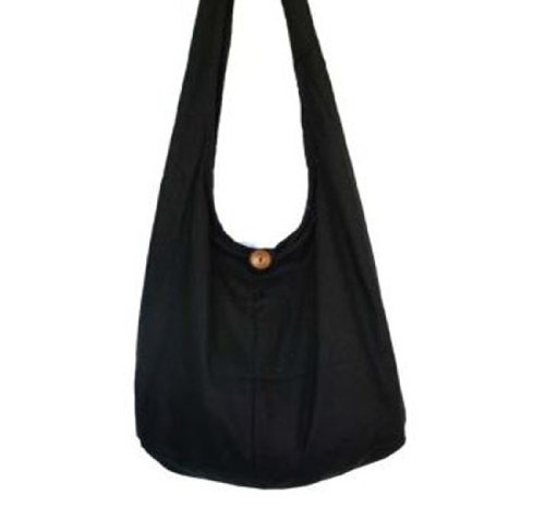 Thai Monk Buddha Cotton Sling Crossbody Messenger Bag Shlouder Purse Hippie Hobo Color Plain Black Free Shipping