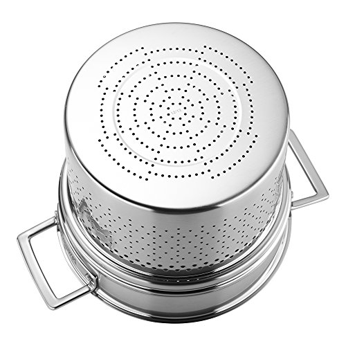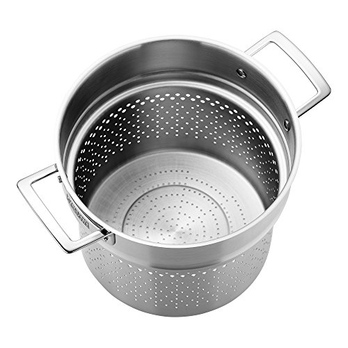 With a satin-finished stainless steel body and mirror-finished handles, this stylish, Belgian-made cookware adds aesthetic appeal to your kitchen. Featuring a beautiful logo nameplate, the ergonomic, stay cool handles ensure easy maneuvering and are securely riveted. The 5-Ply fully clad construction boasts perfect browning, outstanding frying, and stellar searing. Even cooking is guaranteed with the superior heat conduction and flat base stability, which prevents the pans from bulging. Enjoy uncomplicated cooking thanks to the dripless pouring rims and tight fitting, energy efficient lids.Feature