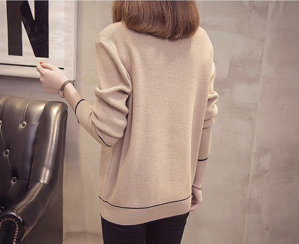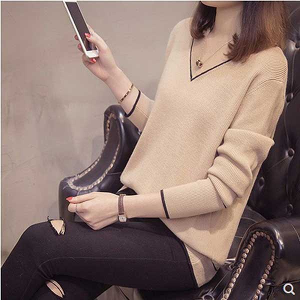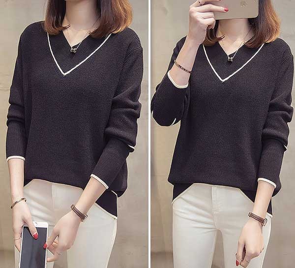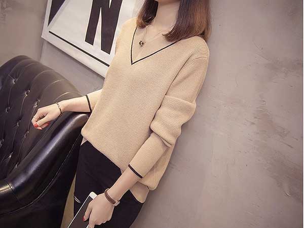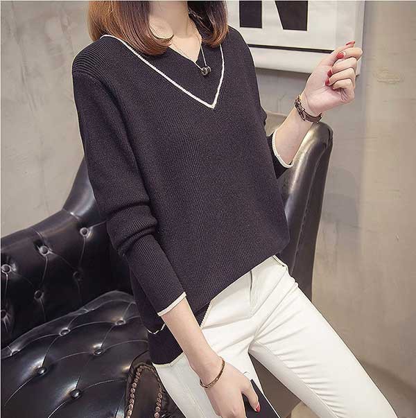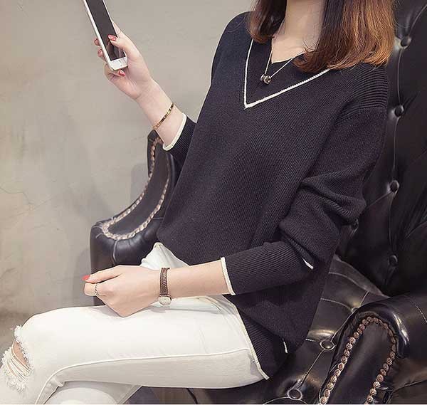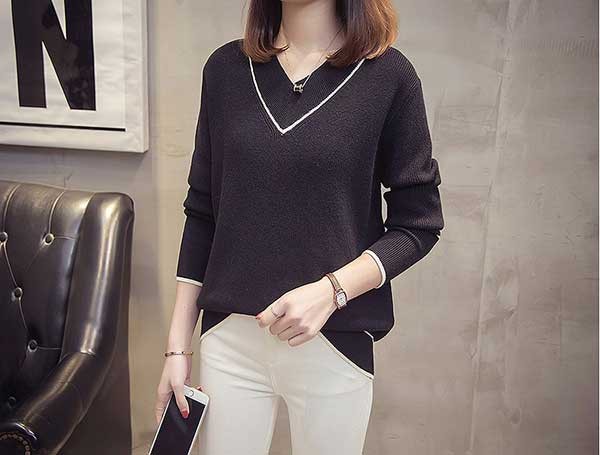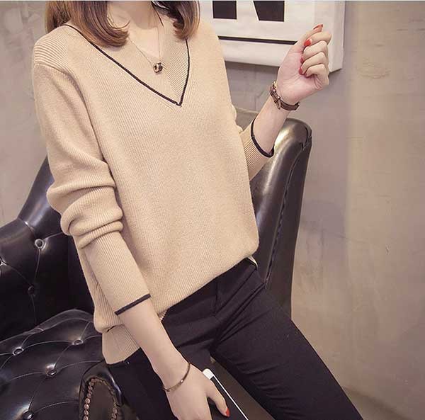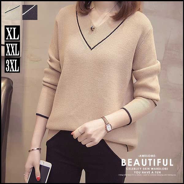 メリハリのあるライン入のVネックがフェミニンなニットトップスです☆