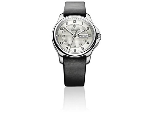 -. Title : Victorinox Swiss Army Men's 241550.2 Leather Officers Quartz Analog Silver Dial Watch