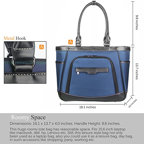-. Feature : Bag Dimensions: 19.6 x 13.7 x 4.7 inches;(Include Handle: 23.6 x 13.7 x 4.7 inches). Laptop Compartment dimensions: 16.1 x 7.4 x 1.5 inches . Fits up to 15.6 inches laptop. / Light weiht design. Durable Nylon material provides funciton of water resistance and scratch-proof. A leather at the bottom of the bag is stylish, durable and Wear-resistant. / Functional interior structure. A roomy main compertment desibns for holding a laptop up to 15.6 inch. One small pocket inside for keep iPad. One pocket with zipper for keeping wallet,purse. / Fuctional pockets. The front pocket with slots for keeping small items like Perfume bottle, Lipstick, skincare,wallet, key ects. The back pocket for papers, books, folders. / Personalized good looking appearance, ideal for daily use at school, work, weekend, outdoor holiday, outdoor activities, occasional travel, gyms, camp, etc. Nice size admirably suits college students, teen girls and adults.
