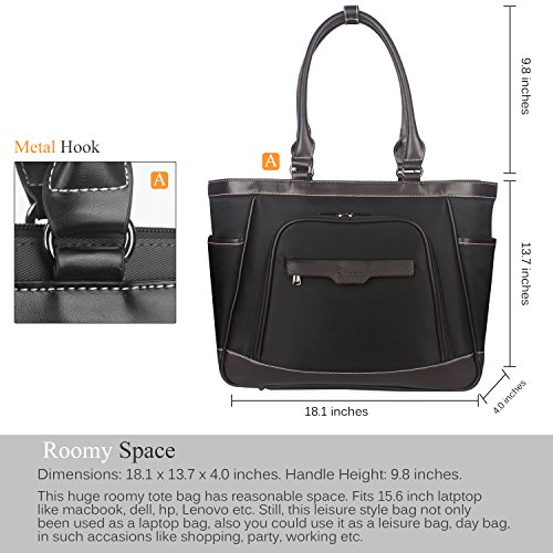 -. Title : CoolBell Women Tote Bag 15.6 Inch Laptop Shoulder Bag With Removable Laptop Compartment Leisure Handbag Top-handle Briefcase With Functional Pockets (Black)