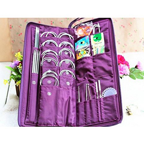 Yosoo 104pcs Knitting Kit Stainless Steel Straight Circular Knitting Needles Crochet Hook Needlework Weave Set Hand Tool Accessorieswith Pu Bag