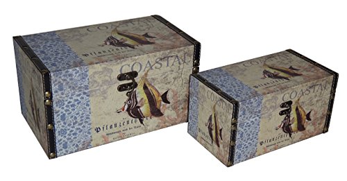 Cheung's FP-3668-2 Vinyl Coastal Themed Lined Rectangular Flat Top Keepsake Box| Set of 2