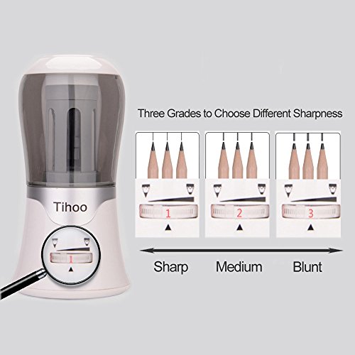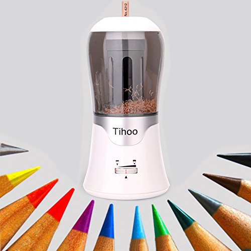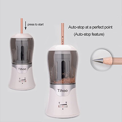 Tihoo School Pro Automatic Electric Pencil Sharpener Smart Auto-Stop,Can Adjust Pencil Tip (for 6.5-11mm Pencils) (white)