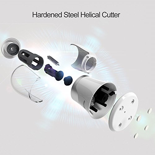 Hardened steel helical cutter and large capacity wastebin.Guarantees dependability and durability.