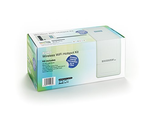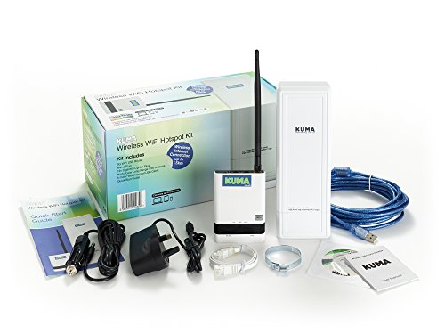 The package consists of two main components, the Kuma High-Powered Long Range Directional WiFi Antenna which will pick up any available WiFi network as far away as 1.5 kilometers and the Kuma Wireless Repeater which will enable you to rebroadcast this boosted signal into your vehicle to create an RV WiFi connection.
