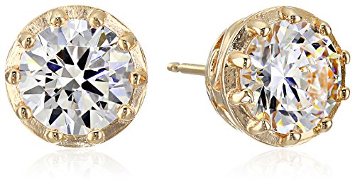 -. Title : 18k Yellow Gold Plated Sterling Silver "Clarion" Round White Cubic Zirconia 7mm Stud Earrings
