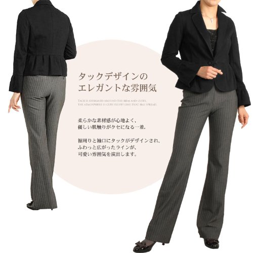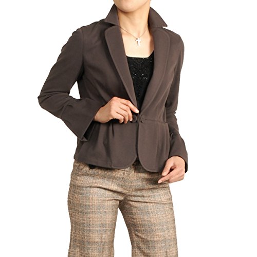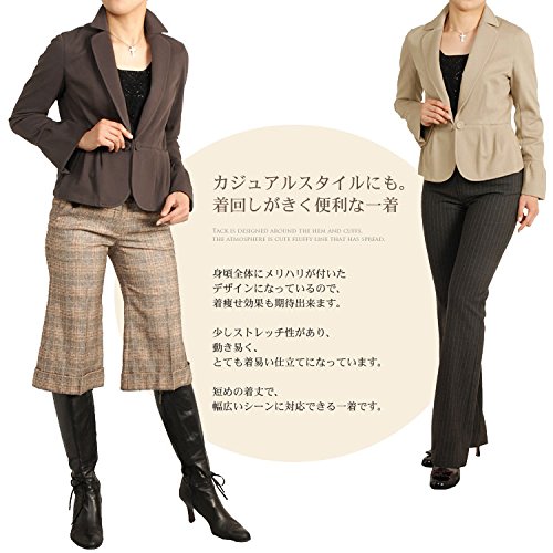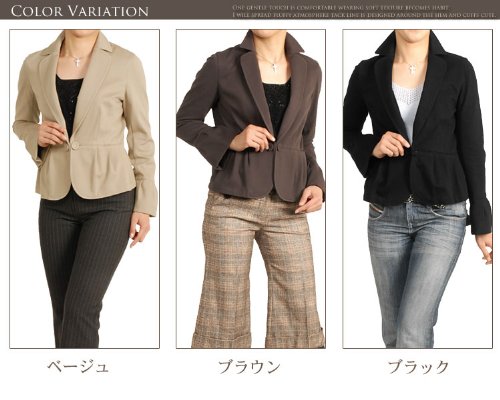 -. Feature : 裾周りと袖口にタックがデザインされた柔らかな着心地。 少しストレッチ性があり、とても着やすいジャケットです。 襟先は丸くカットされ、女性らしい雰囲気が漂います。 / ■サイズ 【40(9号)】着丈52.5cm/胸周り90cm/肩幅39cm/袖丈57cm 【42(11号)】着丈53cm/胸周り92cm/肩幅40cm/袖丈58cm (サイズは実寸です) 【素材】表地:綿55%・ポリエステル45%/裏地:なし 【留具】ボタン×1 / (No. 2345 r )
