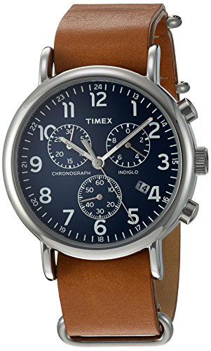 -. Binding : Watch -. Brand : Timex -. Department : unisex-adult -. EAN : 0753048661893 -. Feature : Chronograph Measures to 1/20th Second / Leather NATO Style Slip-thru Strap Plus Extra Navy Nylon Strap / Analog-quartz Movement / Case Diameter: 40mm / Water resistant to 30m (100ft): in general, withstands splashes or brief immersion in water, but not suitable for swimming or bathing -. Label : Timex Corporation -. Manufacturer : Timex Corporation -. Model : TWG012800QM -. MPN : TWG012800QM -. PackageQuantity : 1 -. PartNumber : TWG012800QM -. ProductGroup : Watch -. ProductTypeName : WATCH -. Publisher : Timex Corporation -. Studio : Timex Corporation -. Title : Timex TWG012800QM Analog Quartz Brass Brown & Blue Weekender Watch -. UPC : 753048661893