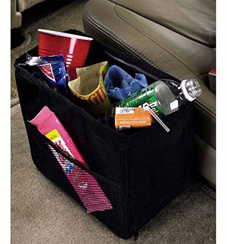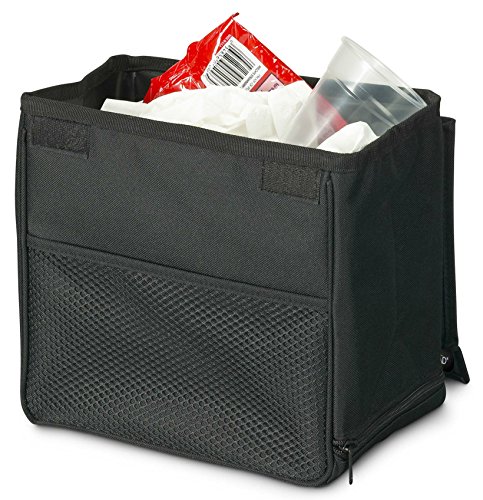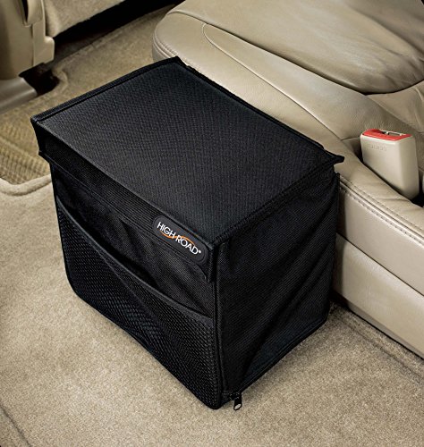 A fully leakproof and weighted car litter basket with side pocket storage that holds 2 gallons worth of trash and won't tip, even on the tightest turns.