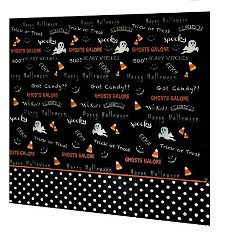 -. Feature : Halloween shower curtain featuring text and graphic on a black chalkboard style background / Pattern shows ghosts, pumpkins and candy corn along with words and phrases associated with Halloween / 72 x 72 inches standard size / Machine washable. Hang dry. / Enhance your Halloween bathroom decor with this stylish seasonal shower curtain