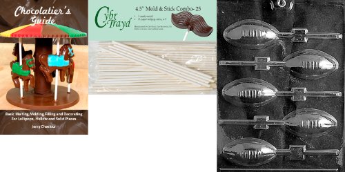 Cybrtrayd 'Football Lolly' Sports Chocolate Candy Mold with 25 4.5-Inch Lollipop Sticks and Chocolatier's Guide