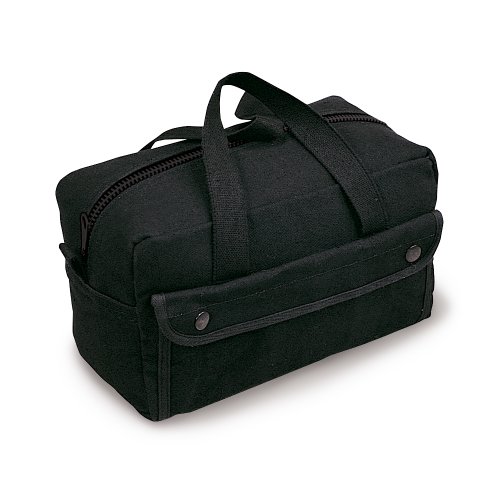 -. Feature : Large zippered main compartment with interior slash pocket / 2 side pockets with snap closure / Heavy duty webbed handles / Durable cotton canvas construction in choice of color / Dimensions: 10.5W x 6.5D x 5.5H in.