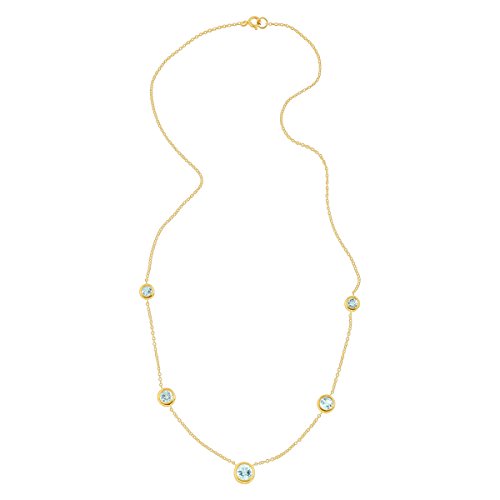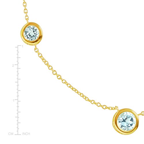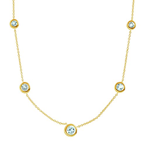 Challenge the classic pendant look with this studded necklace! Five round-cut natural light blue topaz stones, totaling 2 1/5 ct, are bezel-set in 18K gold-plated sterling silver along an 18-inch cable chain. Piece measures 18 by 5/16 inches.Feature