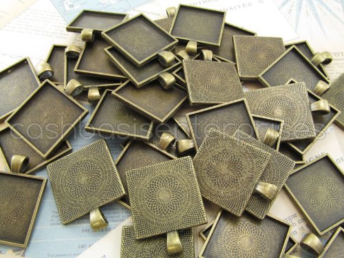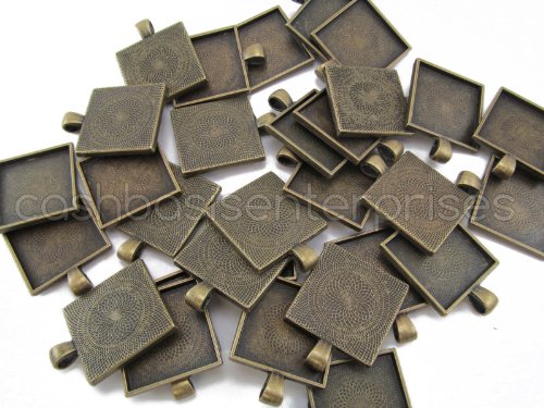 20 CleverDelights Square Pendant Trays - Antique Bronze Color - 1 Inch - 25mm - Pendant Blanks Cameo Bezel Settings Photo Jewelry - Custom Jewelry Making - 1"