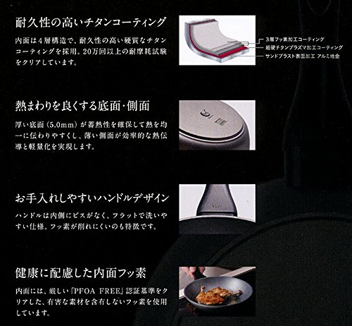 우아한디자인와 기능성을 겸해 구비한(갖춘) 이탈리아의 조리 기구 브랜드TVS사의 SOLIDA시리즈.내면은 4 층구조로,20만회 이상의 내마모 시험을 뛰어 넘은 내구성의 높은 경질인 티타늄(티탄) 코팅.또한TVS 독자적인 특수 제조법에 의해저면이 5.0mm과 두꺼운 모아 둬 축열성이 높게 소재로 균일하게열이 전해지고, 측면을 얇게 하는 것으로 효율적인 열전도와 경량화를 실현.핸들은 내측에 비스가 없고, 플랫에 씻기 쉬어 불소를 깎을 수 있어 어려운 사양.내면 불소에는 유해로 되는 재료를 함유 하지 않는「PFOA FREE」인증 기준입니다.