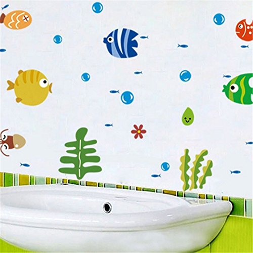 -. Title : ULAKY Fishe and bubble sea world Kids Bathroom Decal Wall Sticker Waterproof Wall Stickers Kids Room