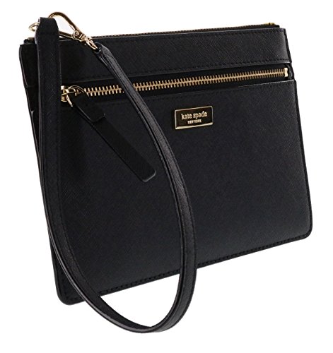 Kate Spade New York Tinie Laurel Way Saffiano Leather Wristlet Handbag Clutch (Black)
