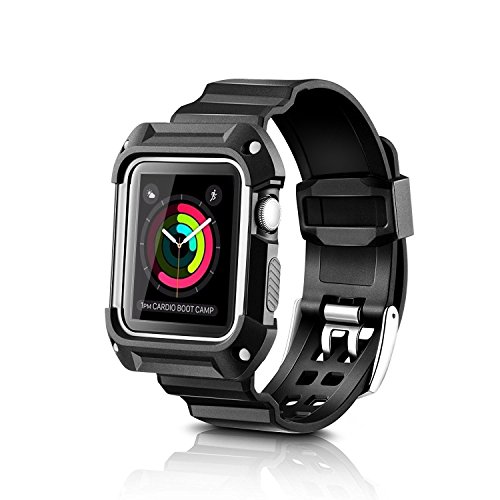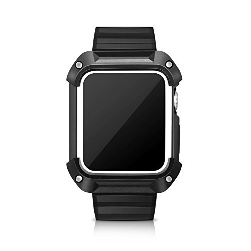 Apple Watch Case Series 2 Series 1, BESTeck Rugged Protective Case with Strap Bands for Apple Watch Series 2 Series 1 Sport Edition 42mm (Black+White)