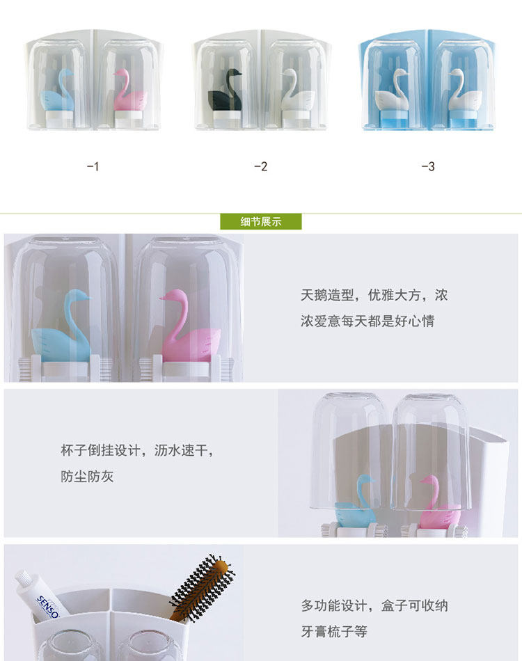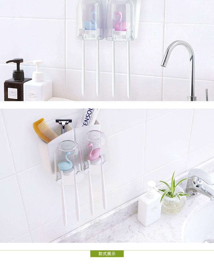 天鹅洗漱套装创意漱口杯强力吸盘无痕免钉牙刷架卫生间刷牙置物架