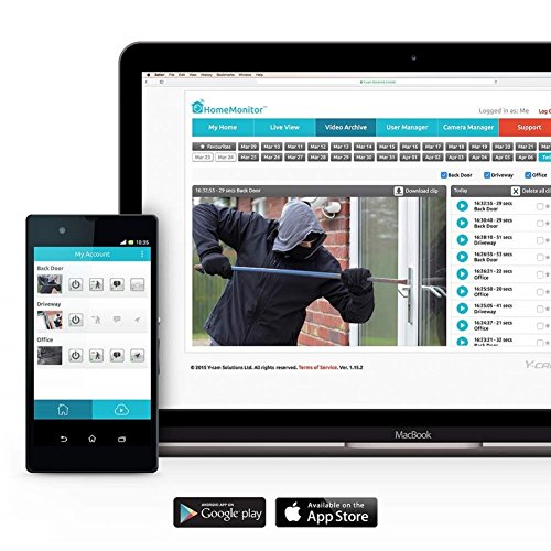- Feature : PREMIERE WIRELESS SECURITY IP CAMERA: Pro Hardware for the Best Performance and Reliability. 720p HD video and FarFocus Lens for the Best View, Smooth Video Quality and Clear Low-Light View. High Spec Mic for Sound Recording. Power over Ethernet Capable / INSTANT, EASY TO USE HOME SECURITY SYSTEM: Fast and Easy Setup with Free, Unlimited Customer and Tech Support. Get Setup and Watching your Camera Online in Minutes. No Software Installation or Router Setup Needed. Much Easier than CCTV Security Systems. / FREE UNLIMITED VIDEO STORAGE: No Ongoing Payments, Hidden Fees, or Subscription Required for Recording! Y-Cam Automatically Stores up to 7 Days of Video in a Secure, Cloud-Based Online Account. Storage is Unlimited (up to 7 days worth of Video) and FREE! / NIGHT TIME SURVEILLANCE: Infrared Night Vision is Built in to your Camera for Around the Clock Performance. Night Vision Lets you View up to 10m, even in Complete Darkness. / MOTION MONITORING AND ALERTS: Motion Triggers Recording of the Seconds Before and After. Setup Alerts to Your PC/Mac, Phone, and/or Tablet. Free Apps Available for iPhone and Android to Expand Monitoring and Control of Cam.