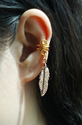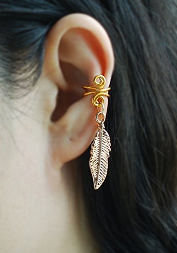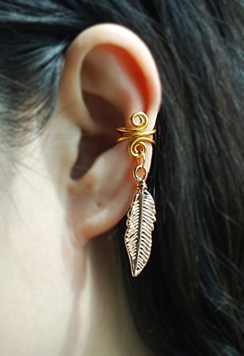 -. Title : 18gauge Ear cuff with Gold Metal feathers charm,Ear Jacket, Ear Wrap,cartilage earring / Please select an option.