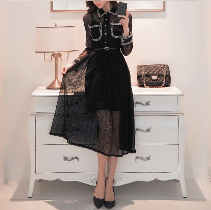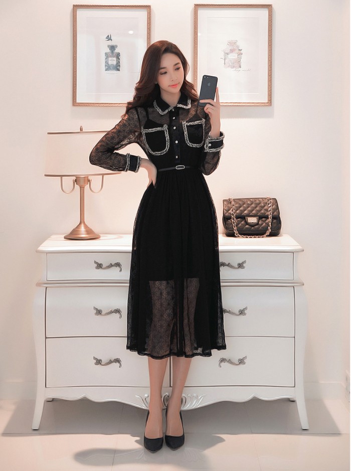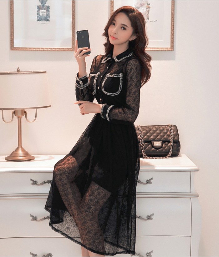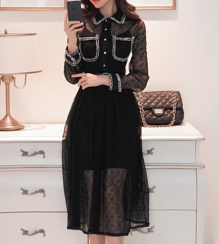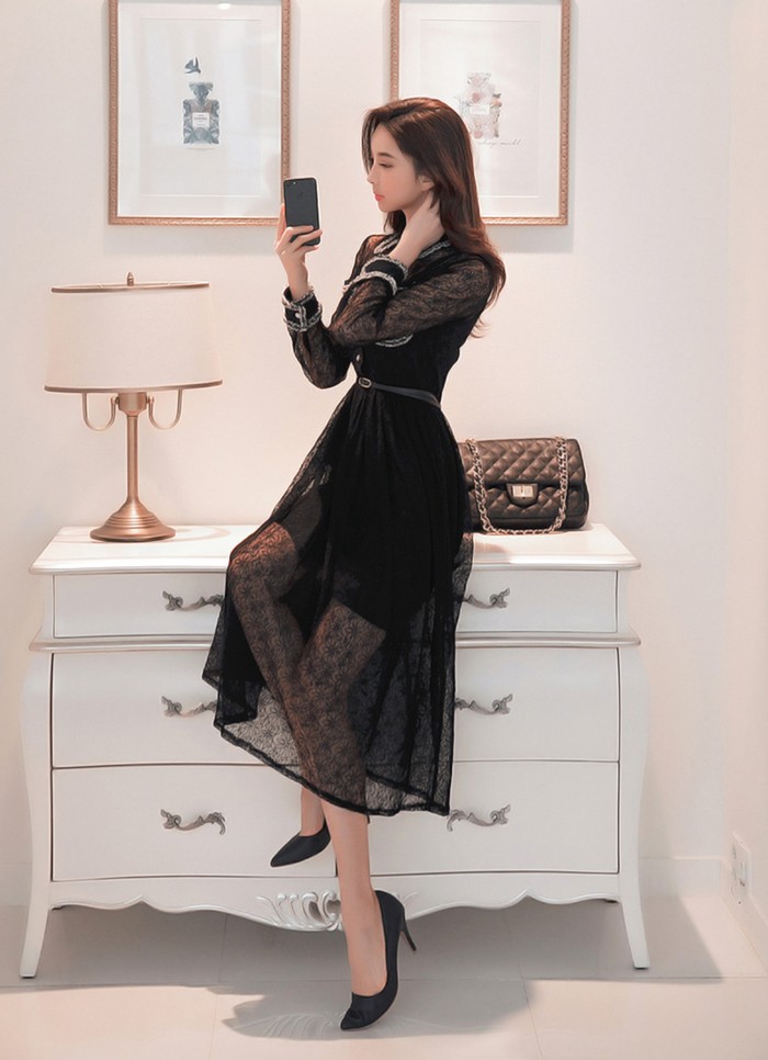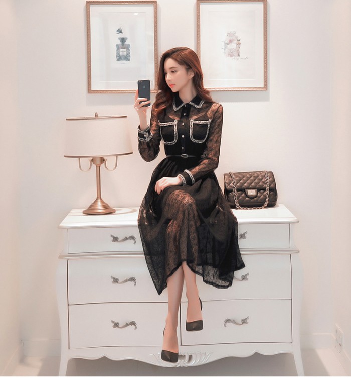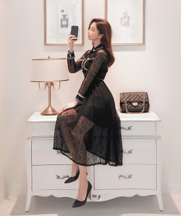 商品名:ワンピース 長袖 レース セクシー きれいめ ロング丈