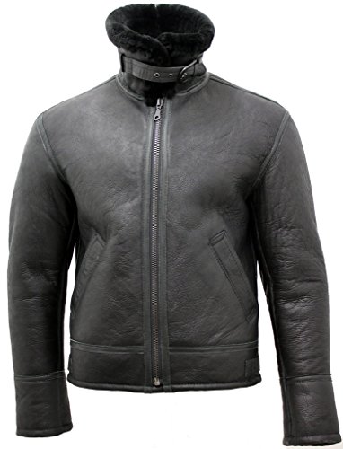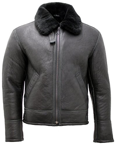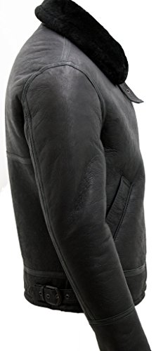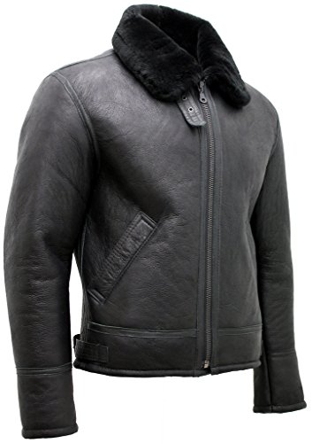 -. Title : Men's Black 'Air force' Real Shearling Sheepskin Fur Flying Leather Jacket