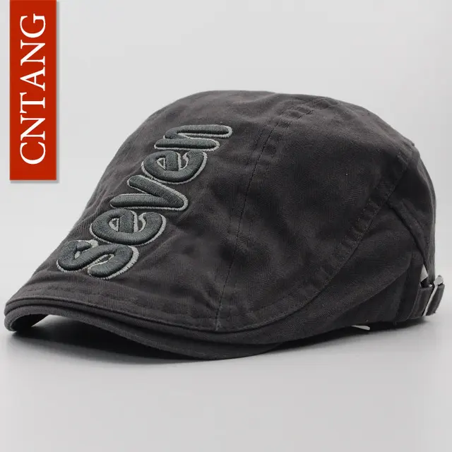 | [해외]Cntang 2017 여름 남성 베레모 vintage 캐주얼 코튼 바이저 패션 편지 베레모 브랜드 플랫 cap 남성 조정 모자 |