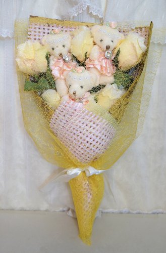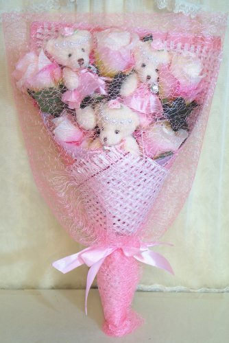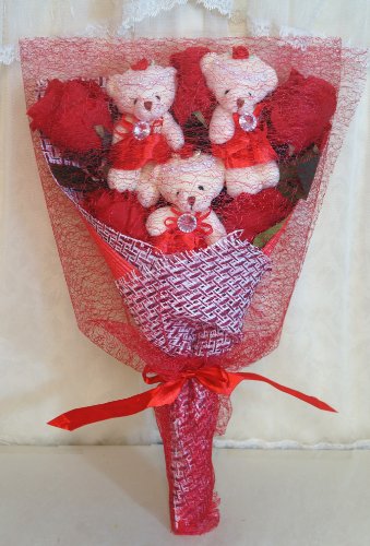 - Feature : Bouquet of 5 pieces of single stem silk flower roses and 3 plush bears in a beautiful wrapping; / Bear dimensions: 4.75''H x 3'' W, and bouquet dimensions: approx 17''H x 12''W; / Each bear is on a "stem" which can be detached. / Available in a variety of colors; / Perfect for Valentine's Day and other holidays gifts;