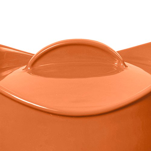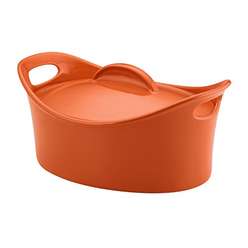 Stoneware from Rachael Ray is an extension of the aesthetic she has already brought to cookware and dinnerware: bright colors, unique shapes and durable materials in versatile pieces that any home cook will appreciate. This 4.25-quart Casseroval is crafted from dependable stoneware that doesn�t react to food and is safe for use in the microwave, dishwasher, freezer and oven _ up to 500 degrees Fahrenheit. The bright color is great for coordinating with other kitchen pieces and it�s sure to be a hit when it makes its way onto the table during a dinner party. The securely fitting lid is perfect for sealing in heat and flavors, and the wide and comfortable handles mean it�s easy to transfer the casserole around the kitchen, dining room and right to the table from the oven.